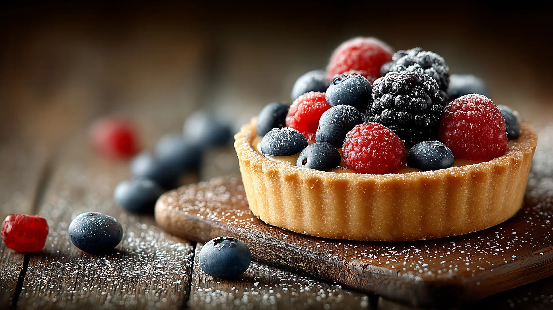 陽光が差し込むテーブルの上で、瑞々しいフルーツタルトが主役のワンシーンを切り...